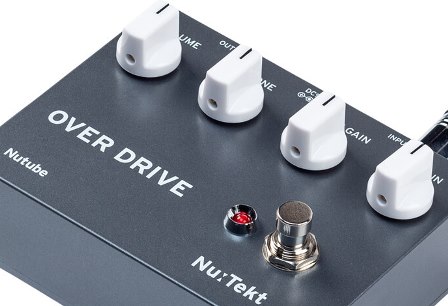 Az OD-S fedlapján négy potit találunk: egy Volume (hangerő), egy Tone (hangszín), valamint két GAIN szabályzót. Ez utóbbiak közül egyik egy sima Gain, amivel a torzítás mértéke állítható, a másik viszont az úgynevezett Tube Gain – és valójában ez a fűszer az ételben! A Tube Gain szabályzóval állítható ugyanis a Nutube vákuum cső erősítő áramkör bemeneti jelszintje. Gyönyörű, dús felharmonikusokban gazdag hangzást érhetünk el vele, ráadásul ez nem vész el akkor sem, ha a normál Gain potit kitekerjük a maximumra. Pontosan úgy működik, mint egy csöves erősítő!