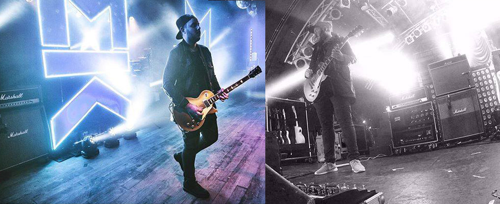 James: Az együttesek, amikbe felnőtté válásom során beleszerettem, az Oasistől kezdve a még most is népszerű The Darknessig, a Marshall felszereléseit használták. Mindenhol ezzel a márkával találod szembe magad. Tehát old school cuccokat használok, van egy 1987X Plexi fejem, és egy JTM45 erősítőm, egy 1960TV és egy 2 x 12-es ládám. Azt nem tudom, hogy kifejezetten az én ízlésem szerint tervezték-e, vagy egyszerűen csak egy modell volt a sok közül. Ez egy 2 x 12-es Greenback szórókkal szerelt 1936 láda, szürke ráccsal az elején. Ami a Marshall fejeket illeti: úgy tűnik, hogy Greenback-eken szólnak igazán jól. Nagyon szeretem a Vintage 30’-asat is, de nekem ez a Greenback jön be igazán.
